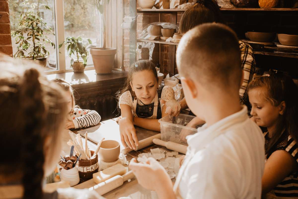 Волшебство продолжается за гончарным кругом. Дети приходят в полный восторг, когда наблюдают за превращением комка глины в стаканчик. После этого каждый ребенок садится за круг и вместе с преподавателем делает основу для своей кружки. У кого-то единорог будет высокий, у кого-то ниже и с круглыми бочками - кто как захочет. Сушим стаканчик феном и приклеиваем детали.
