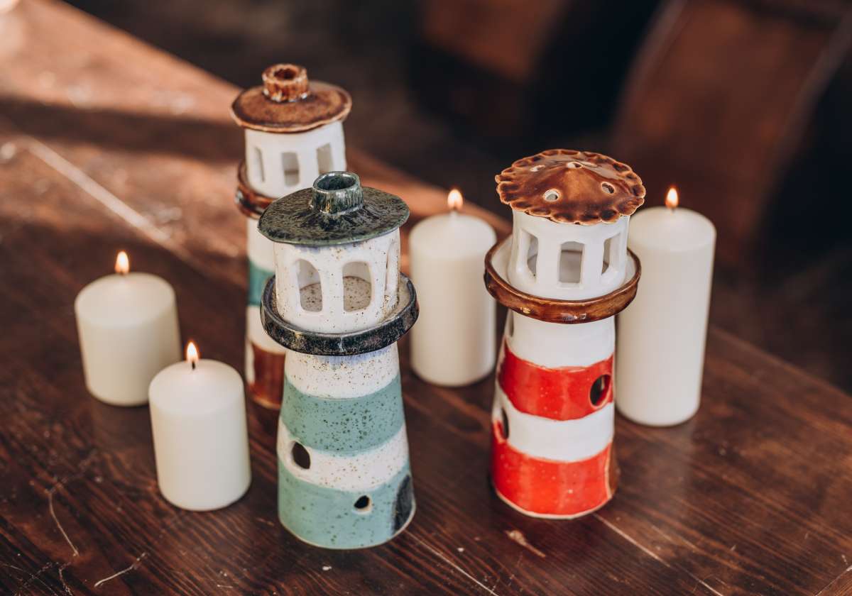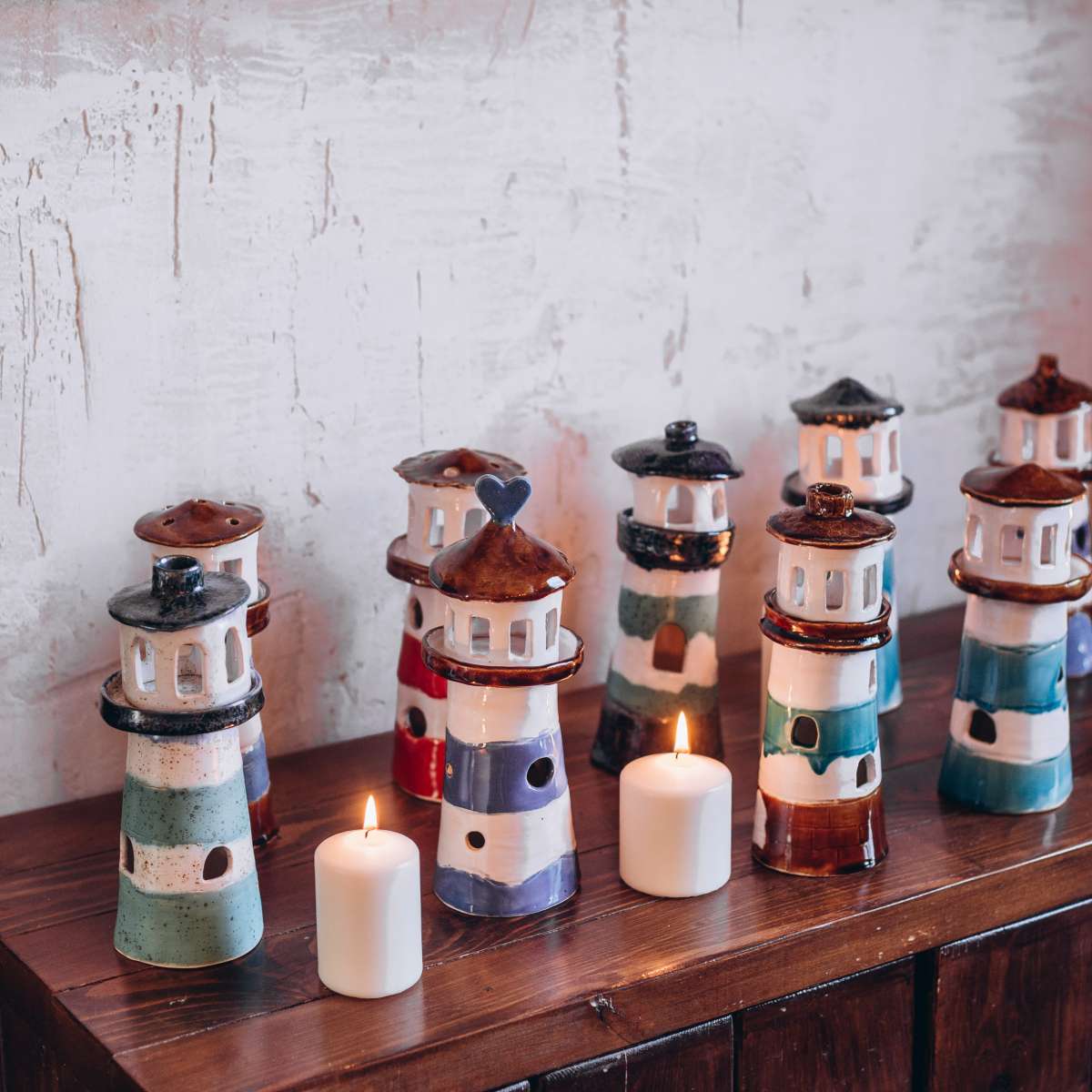 Маяк - это всегда шум волн, шорох песка и свежий ветер. Это символ путешествий и неугасающего стремления идти к своей цели. И хотя говорят, свет маяка равен свету примерно двадцати миллионов свечей, мы предлагаем сделать подсвечник для двух свечей: одну можно поставить в корпус маяка, а вторую - под съемную башенку. Представляете какая будет атмосфера комнаты, в которой мерцает маленький маяк? Просто волшебная! И это волшебство начинается уже на мастер-классе.