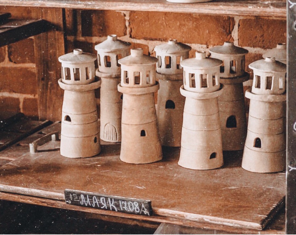 Маяк делается достаточно долго, но эти три часа пролетают как один миг! Вначале мы раскатываем глину в большой пласт, и делаем корпус. Далее - поставка под верхнюю башню и маленький забор. После этого - фигурная решетка верхней части. Это могут быть прямые окошки или фигурные - у каждого получится по-своему. Далее делаем крышу, все соединяем и только после этого приступаем к декору. Нарисовать двери и вырезать окошки, украсить маяк ступеньками, кирпичиками, ставнями, якорями - каждый подсвечник получается необыкновенно красивым!